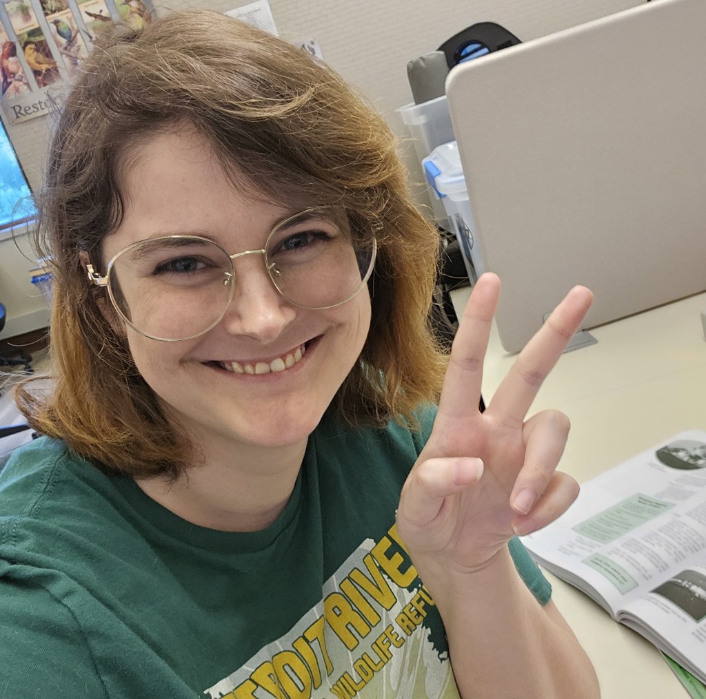Other than her interest in biology, she enjoys astronomy and anything space related, info-dumping random facts or things she’s learned, and making truly terrible jokes/puns. In her free time she enjoys reading, writing, playing video games, and spending time with her spouse and cats!